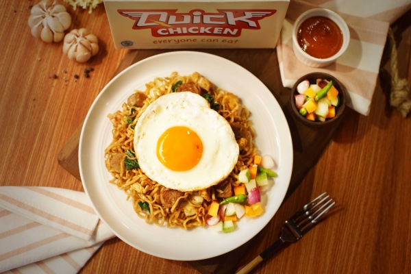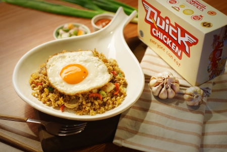 Cicipi sajian Nasi Goreng khas Jakarta ala Quick Chicken yang berisikan telur mata sapi dan potongan ayam untuk menjadi santapan malam Anda. Jangan lupa untuk menaburkan acar untuk melengkapi kelezatannya!